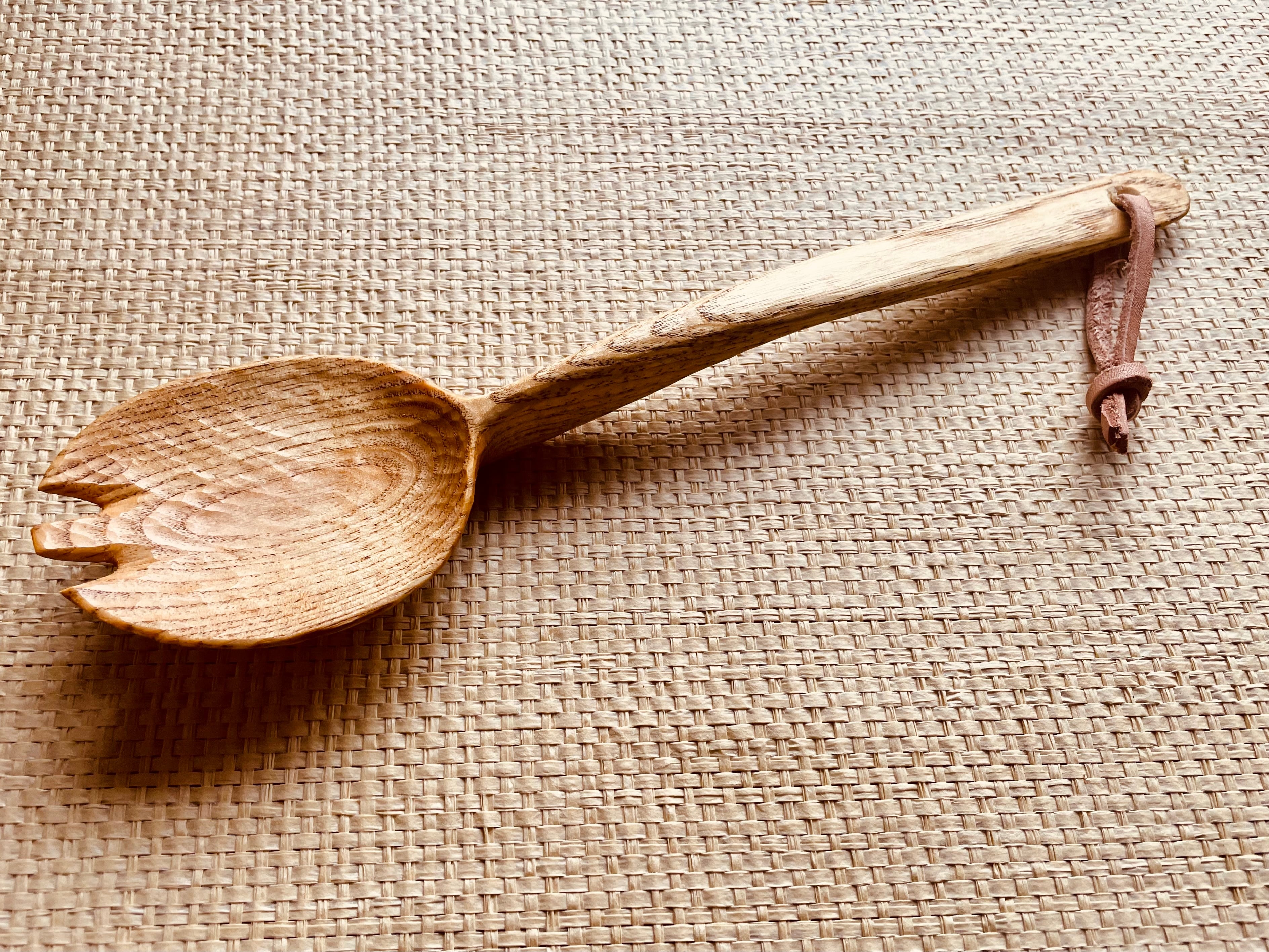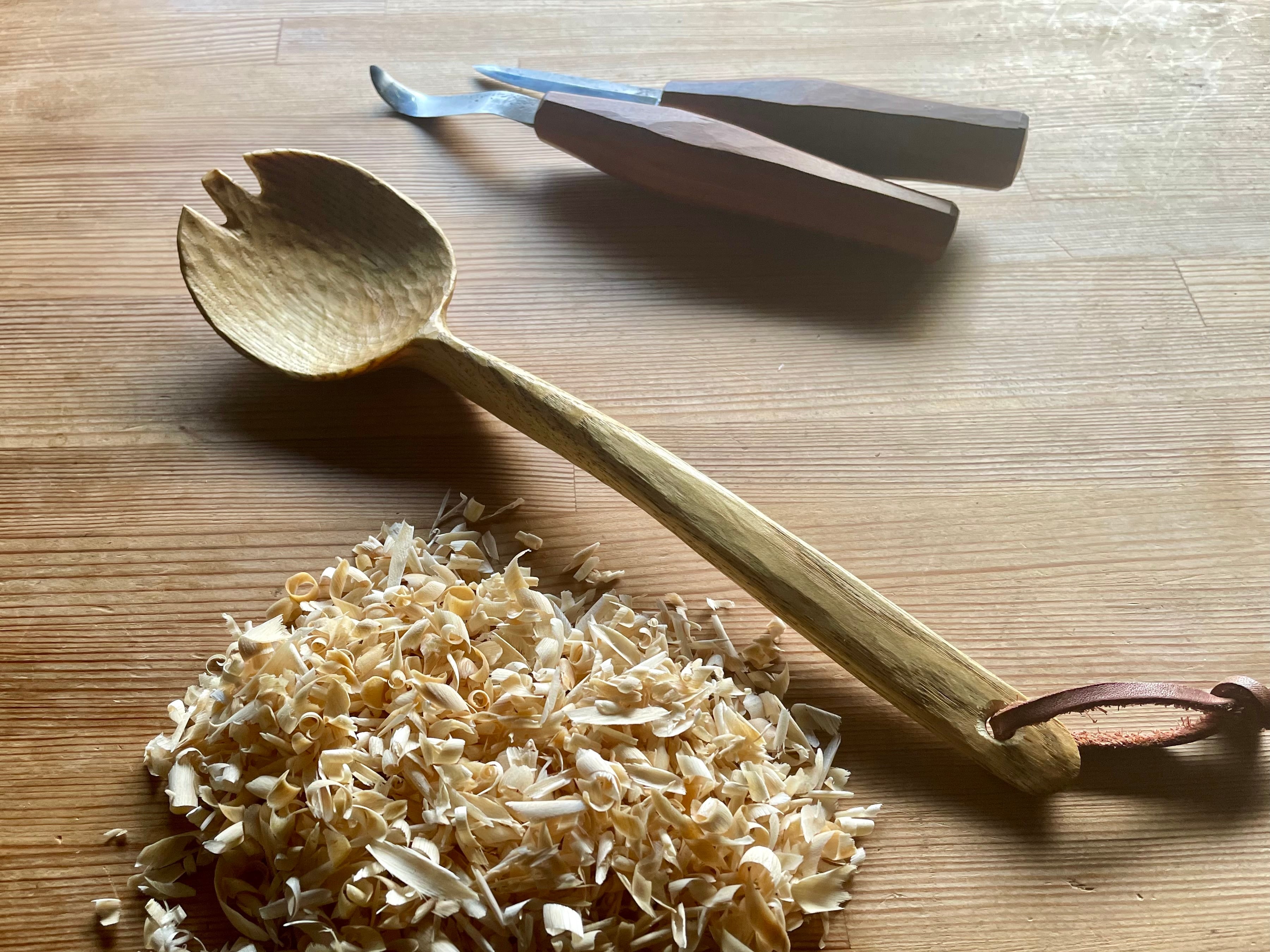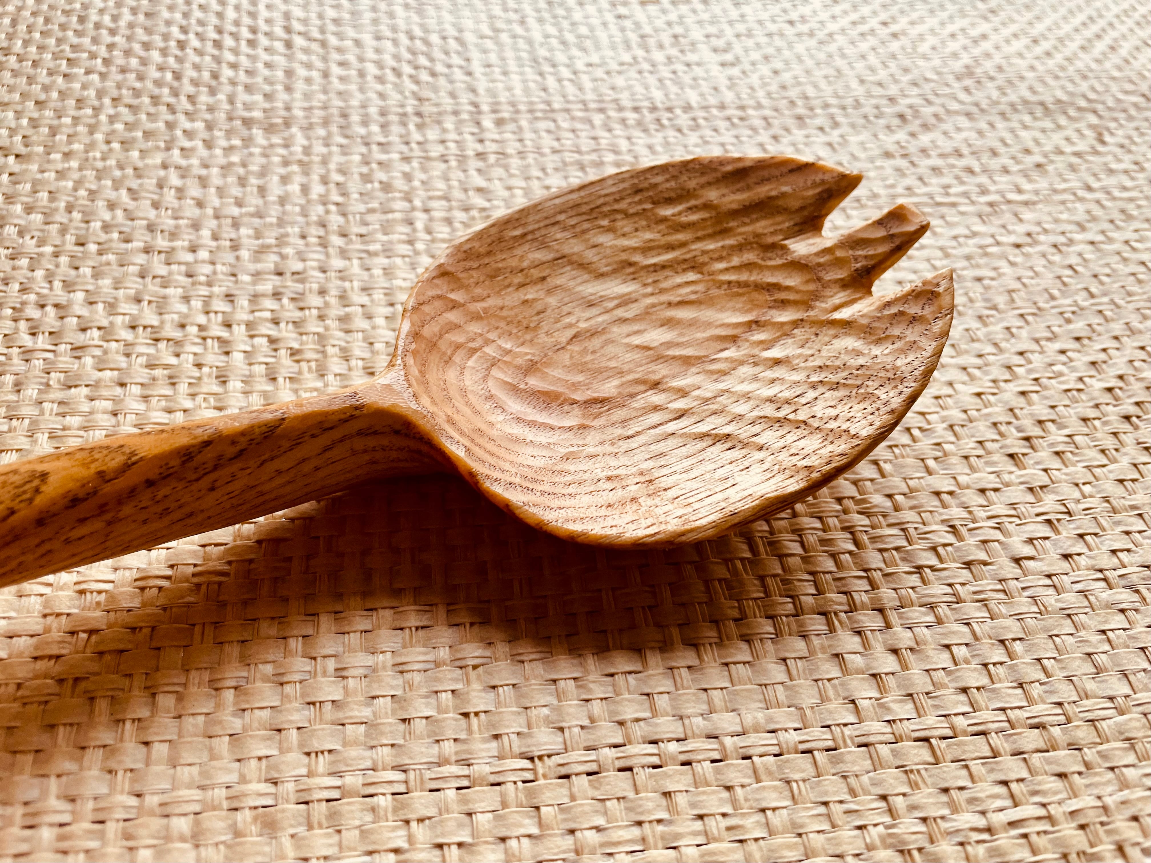 美濃のトチの木の丸太から、電動工具は使わない全て人力(グリーンウッドワーク)で彫り出したサービングスプーン。