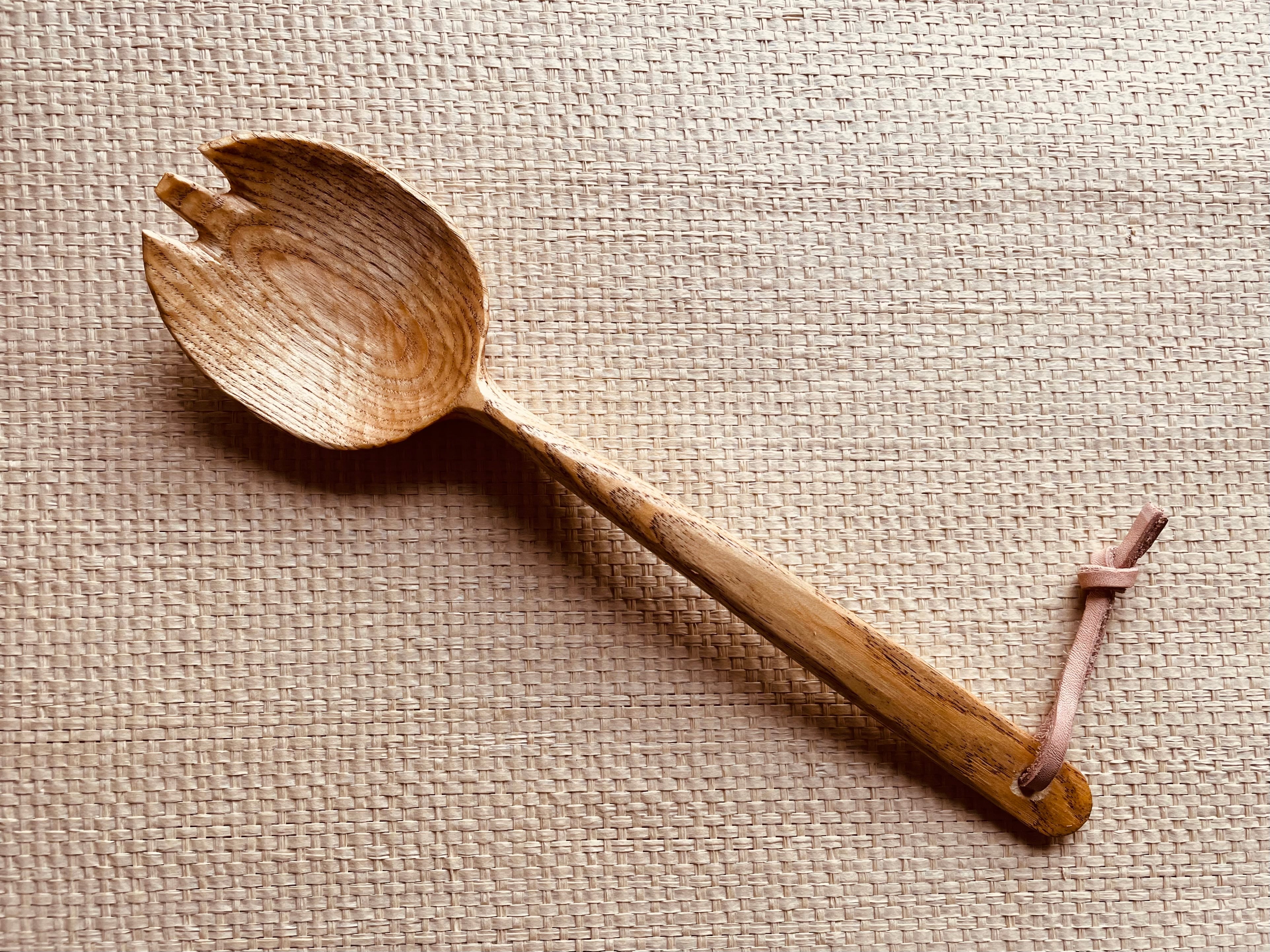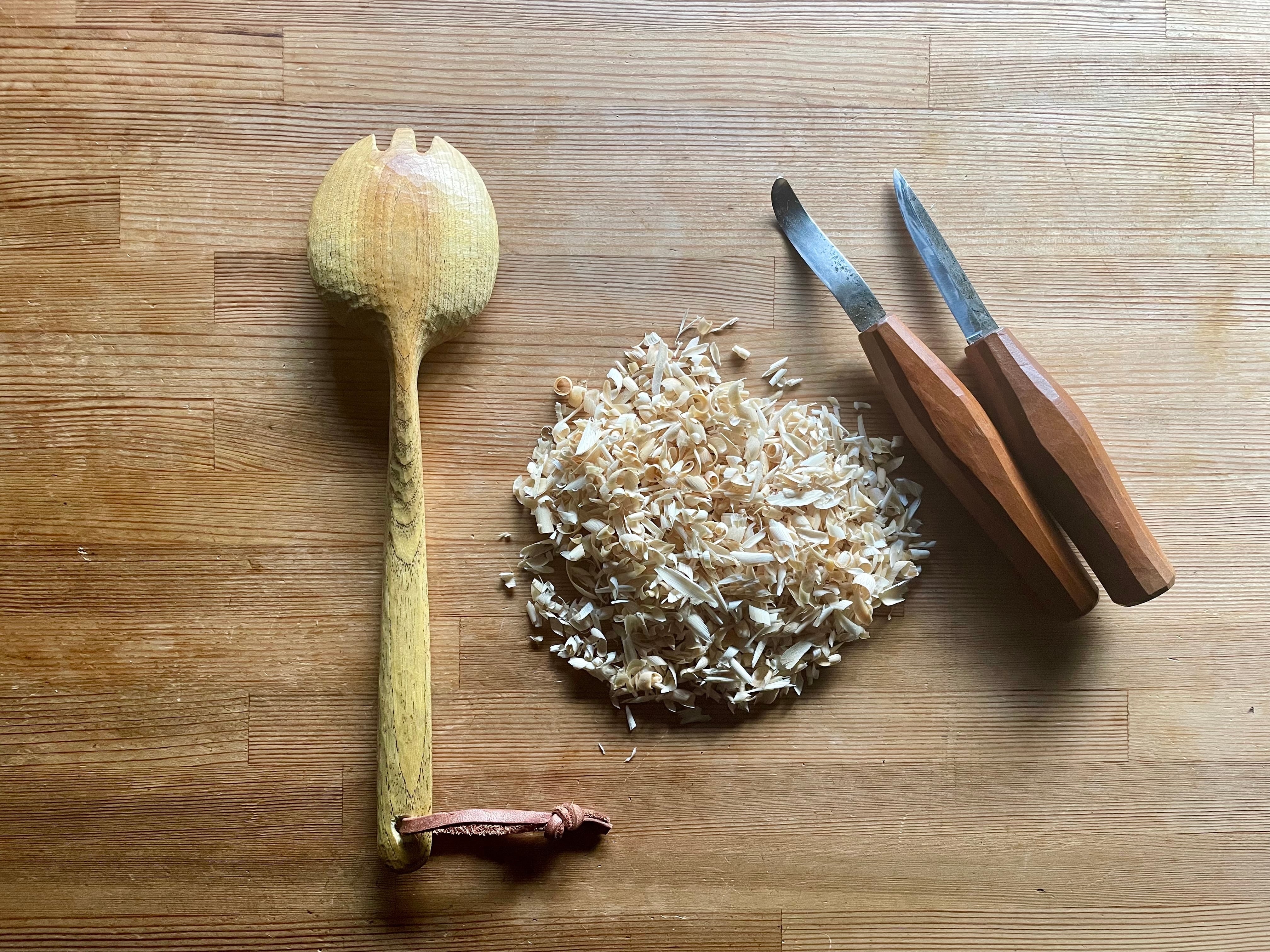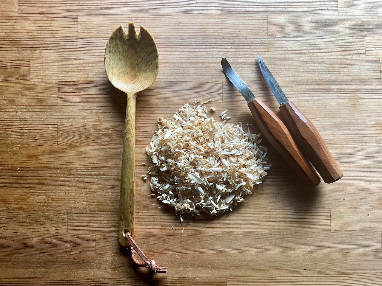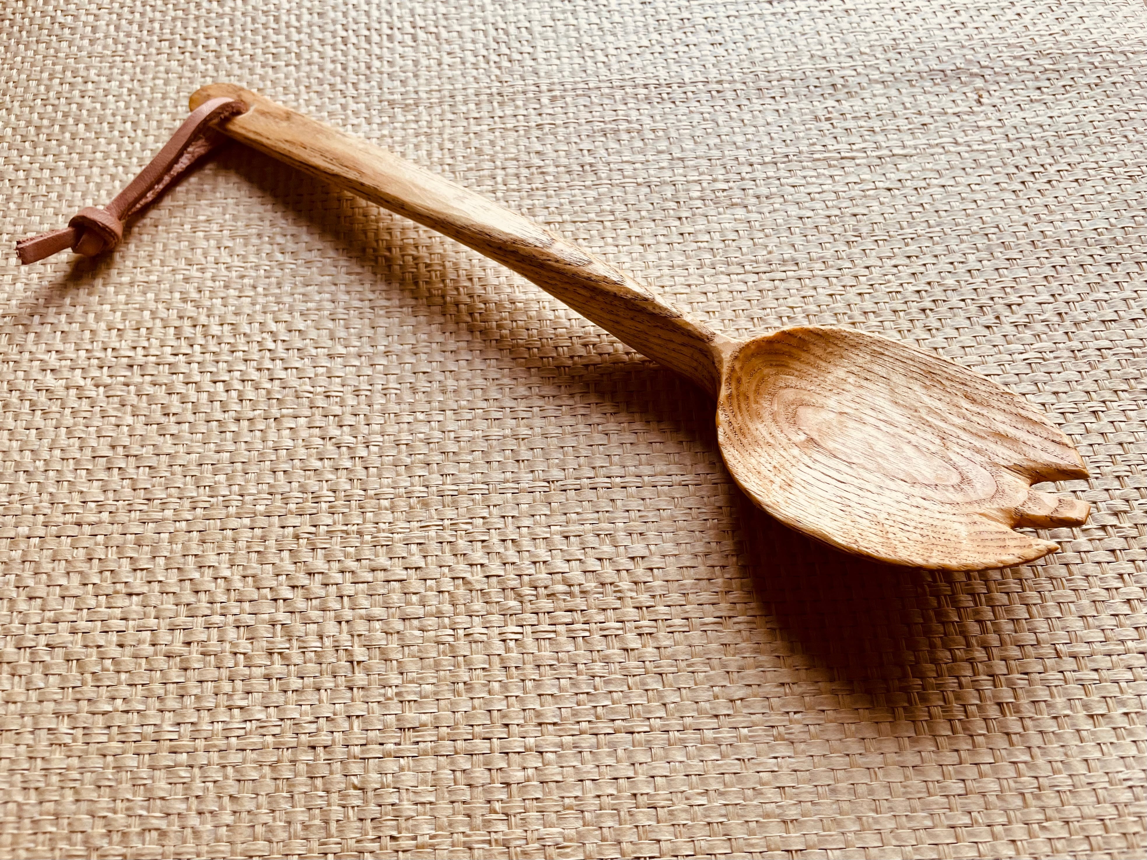 美濃のトチの木の丸太から、電動工具は使わない全て人力(グリーンウッドワーク)で彫り出したサービングスプーン。